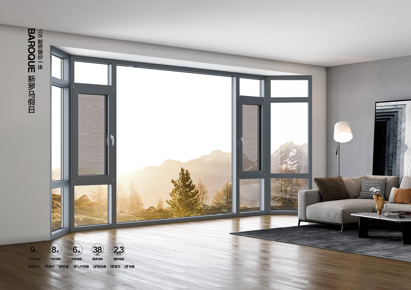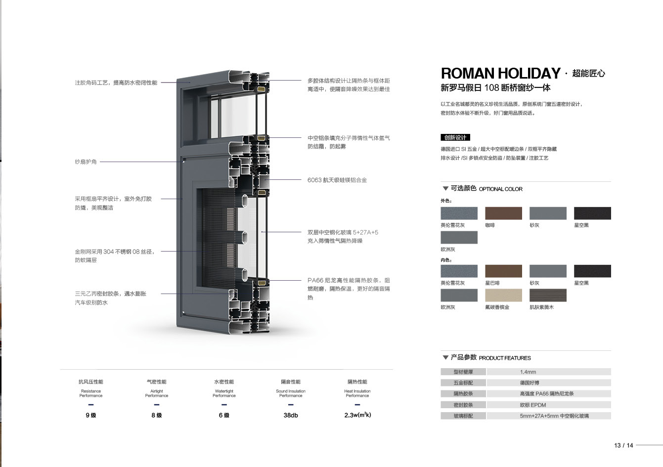 產(chǎn)品型號:新羅馬假日108斷橋窗紗一體