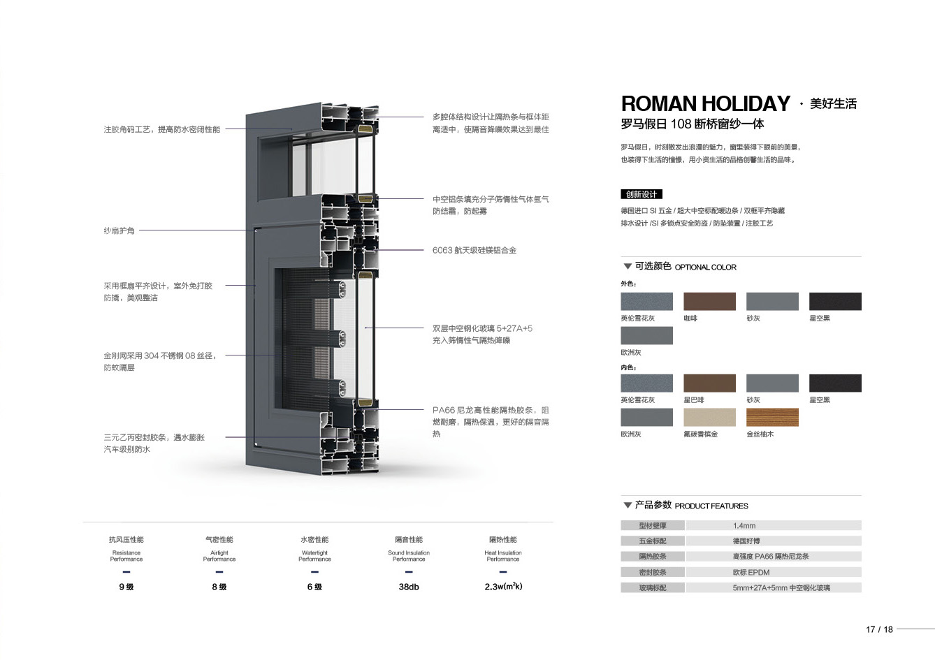 產(chǎn)品型號(hào):羅馬假日108斷橋窗紗一體